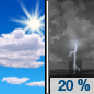 Mostly clear to partly cloudy.A slight(20%) chance of a shower or thunderstorm later at night.Winds south-southwesterly at 15-25 km/h.